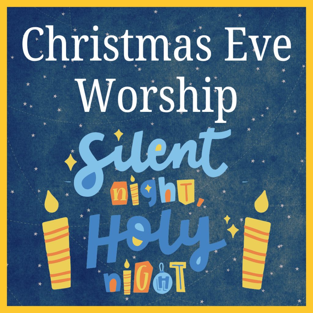 On December 24 at 5:00pm our Calvin Street Band will be playing Christmas music in the Gathering Place, and there will be refreshments. The Christmas Eve worship service will begin at 5:30pm and will conclude with singing “Silent Night” by candlelight.