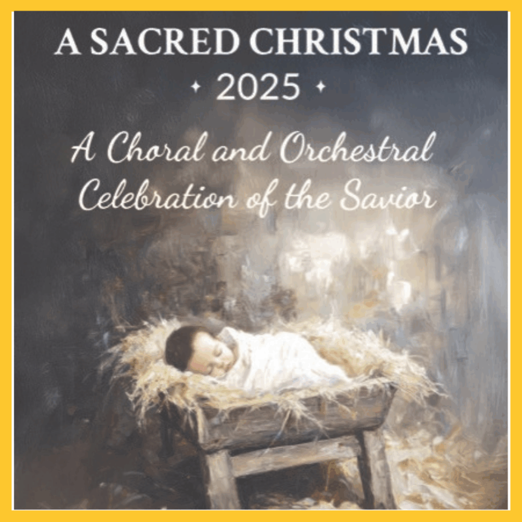 On Saturday, December 20, at 7:00pm pianist, Garth Smith presents “A Sacred Christmas 2025”- free for the NWA community. A 24-voice choir, orchestra, band, and narrators, accompanied by a beautiful art/video display present Garth’s arrangement of traditional carols, along with covers of contemporary Christian artists. Attending this event is fast becoming a holiday tradition for many in northwest Arkansas. Refreshments will be served following the concert.