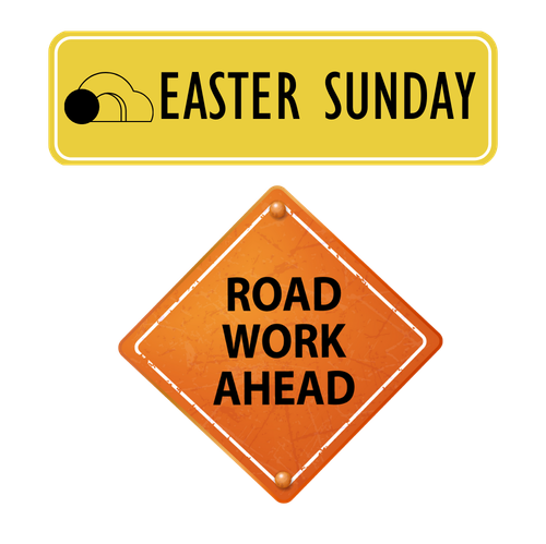 | April 5 | Easter Sunday | Road Work Ahead | Matthew 28 |